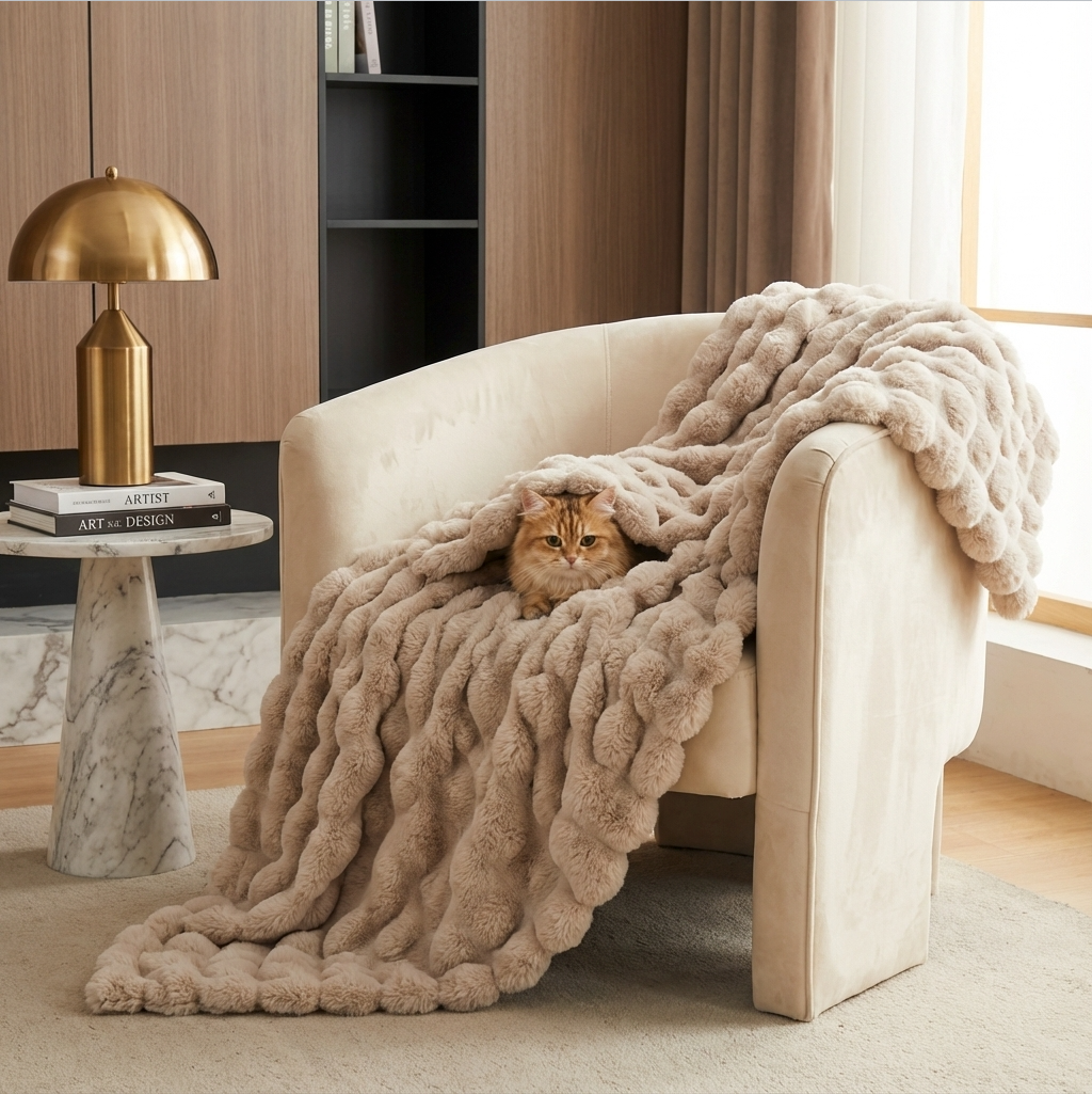 Experience plush warmth and softness with our faux fur blankets, powered by LuxeComfort Technology.