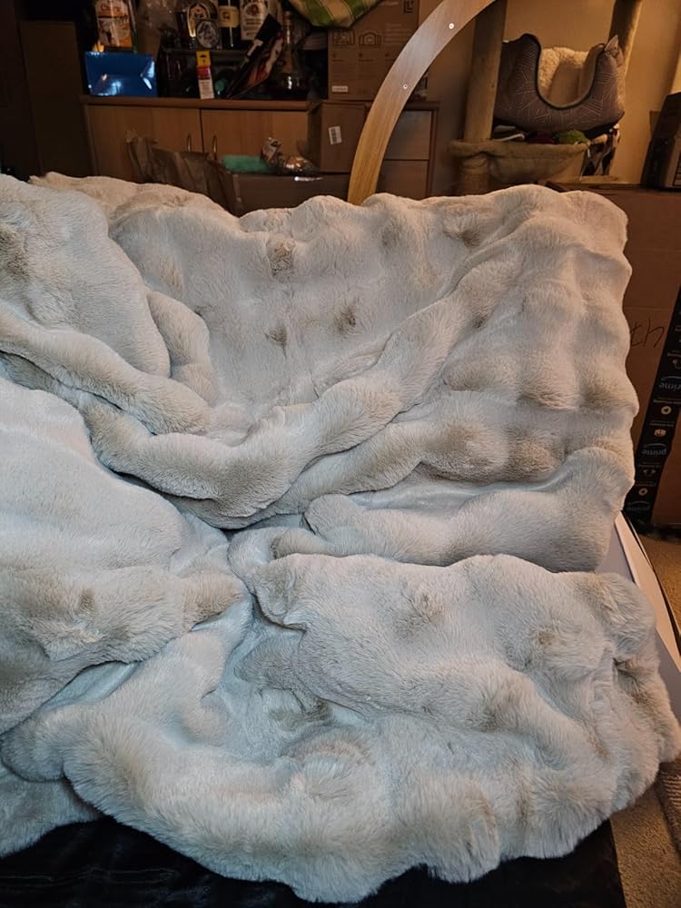 I’ve had my experience with a few of these faux fur blankets and not all of them are equal. This blanket hits all the marks. I cannot tell you how soft it is. It feels more like real fur than any faux fur I’ve put my hands on (which has been a lot). It’s buttery, dense, I could just go on and on. I love that the back side is velvet and blanket itself is heavy. That’s how real fur blankets are. They’re heavy and lined with a soft, dense velvet on the back. Except you’re going to dish out thousands of dollars for a real fur blanket. Get this instead! One you put your hands on it, you won’t want to stop touching it.I would love to see more colors. Black would be an amazing but even a dark grey or mottled styles so I can put these in different rooms of my house. I’m super happy with this blanket. Finally a faux fur that truly feels like real fur and doesn’t break the bank. Plus you can pop in the washer when it needs to be cleaned.The light grey color is true to color also. The lighting in my room is really yellow and dark and I tried the best I could with an external light to capture the color.