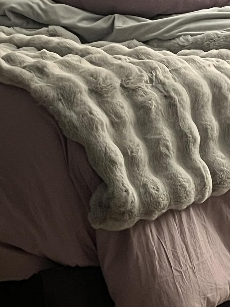 The blanket looks beautiful on my bed. It is soft, thick, and I love the texture. However, I am picky about my fur blankets and this one has that plastic/synthetic feel to it that does not feel warm like other similar blankets that I have.