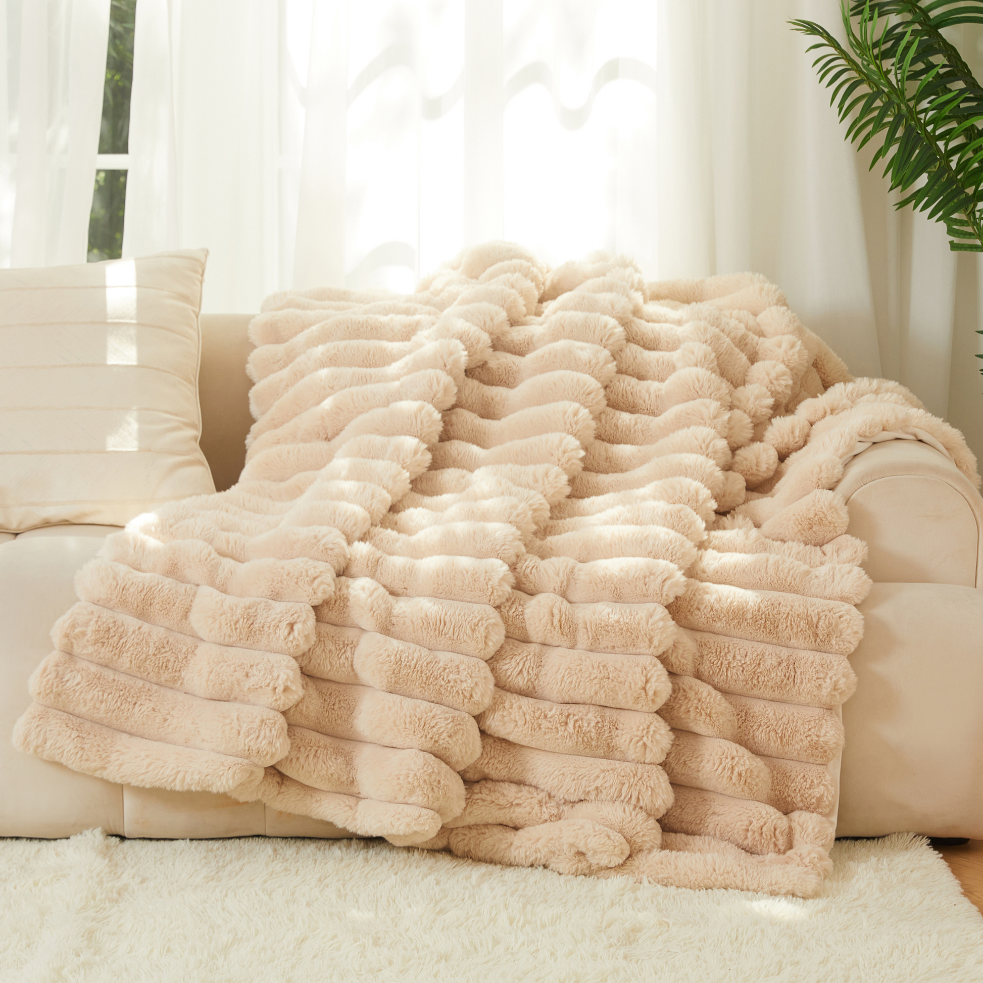 Soft and furry, thick heavyweight quality. It’s warm and comfortable I liked it enough on my tv chaise longe that I bought another one for a bed throw if it gets chilly. Excellent for cool season. Washed easily in my front loader gentle cycle and delicate dry. I suggest not to frequently to maintain the original furry loft. Beautiful